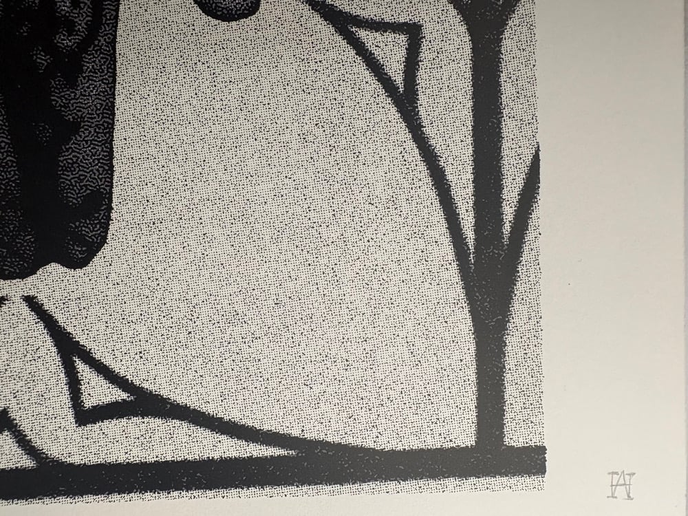 Black and grey silkscreen print in two layers